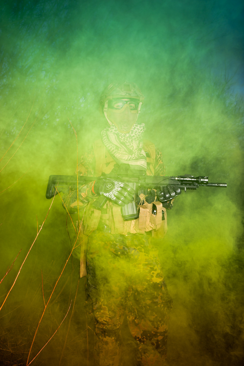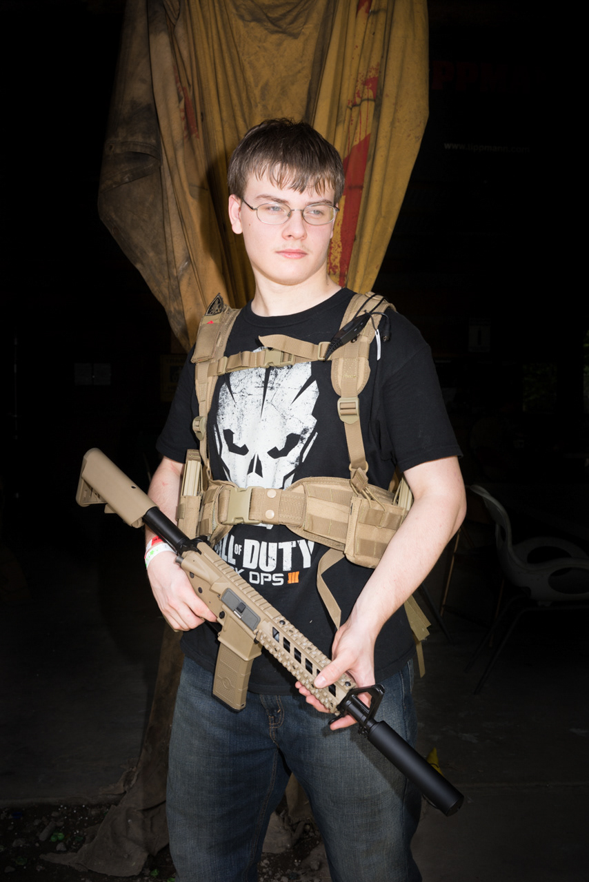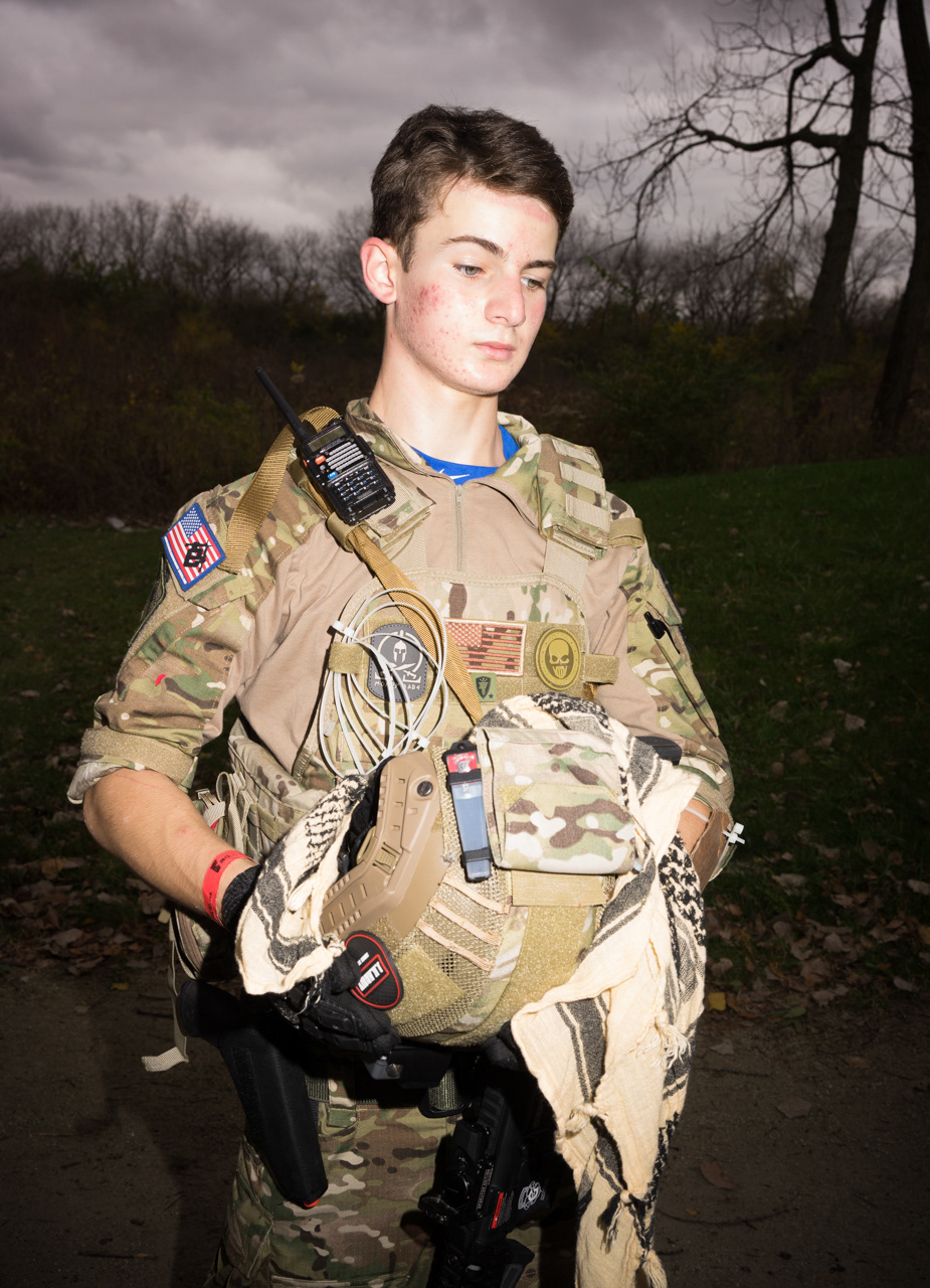 In The Mist is my five-year examination of Airsoft culture, In The Mist is my five year examination of Airsoft culture and a continuation of my work examining white adolescent and youth culture. Airsoft is a live-action version of first-person shooter video games – the rules of gameplay are similar to Call of Duty. This body of photographs depicts Airsoft players in the forest landscape, where they practice. Through their costumes and realistic weaponry, the players precisely recreate the look of a contemporary soldier or militia member. At times, the game takes on realistic proportions and these young men appear as soldiers. In other instances, their youth and ill-fitting clothing reveal them as children playing a game.